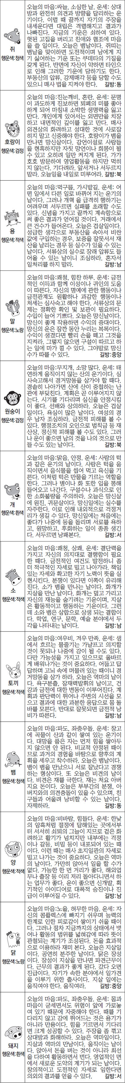 금일복권, 주식, 부동산매입 행운의 띠: 호랑이,말,개(토요일:토끼,양,돼지)