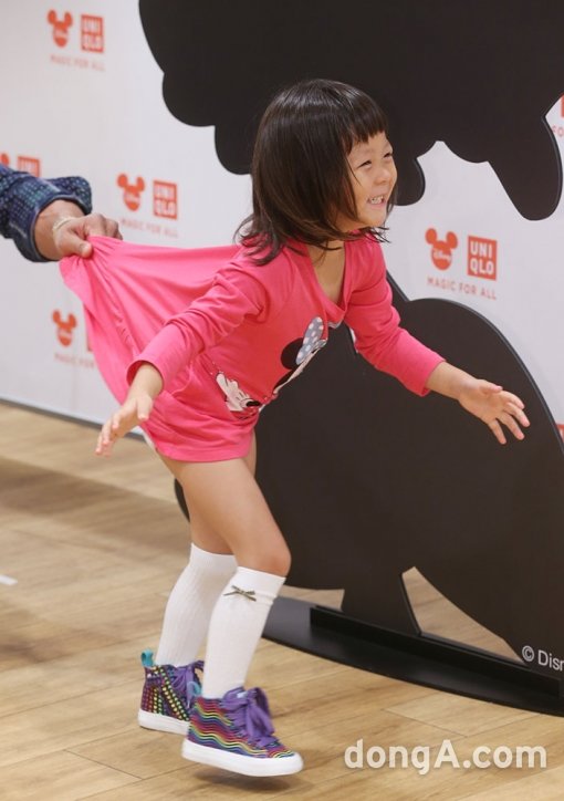 추성훈 추사랑이 21일 오전 서울 중구 명동 유니클로중앙점에서 ‘디즈니 스페셜 존’ 오픈 기념 행사에 참석해 포토타임을 하고 있다.