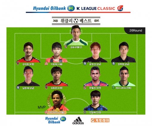 한편, K리그 클래식 26라운드 베스트 팀은 FC서울이었으며 위클리 매치로는 19일 부산-서울 전이 꼽혔다.