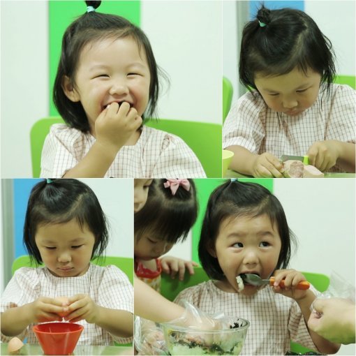 그런가 하면 지온은 김밥이 완성되기 전에 배가 고팠는지 김밥 속 재료를 먹기 시작해 깜짝 놀라게 했다. 지온은 김밥 재료인 쌀밥을 거침없이 먹은 것. 이에 지온은 소시지부터 당근, 김까지 모두 싹쓸이하며 꼬마 푸드 파이터에 등극했다는 후문이다.