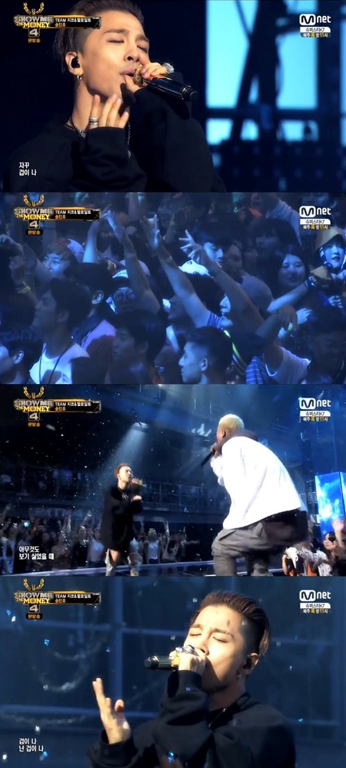 그룹 위너 멤버 송민호가 빅뱅 멤버 태양의 도움으로 블랙넛을 꺾고 ‘쇼미더머니4’ 결승에 올랐다.