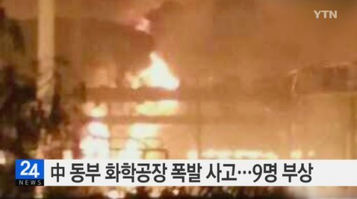 한편 중국은 지난 12일 톈진항 물류창고에서 일어난 폭발사고로 121명이 사망하고 600여 명이 부상을 입은 데 이어 화학공장까지 폭발하며 불안감이 높아지고 있다.