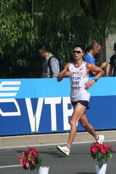 한국남자경보의 간판스타 김현섭(삼성전자)이 23일 중국 베이징에서 열린 제15회 세계육상선수권대회 남자 20km 경보에서 1시간21분40초로 10위에 올랐다. 2011년 대구대회에서 6위, 2013년 모스크바대회에서 10위를 차지했던 김현섭은 한국육상 사상 처음으로 세계선수권 3회 연속 톱10을 달성했다. 사진제공|삼성전자육상단