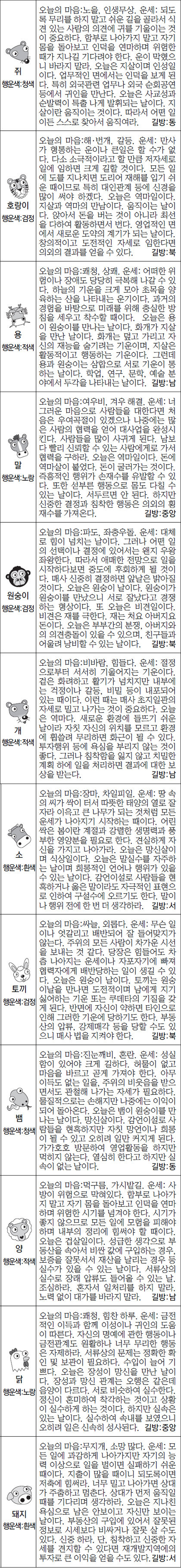 금일 주식, 부동산 매도 행운의 띠: 호랑이,말,개
