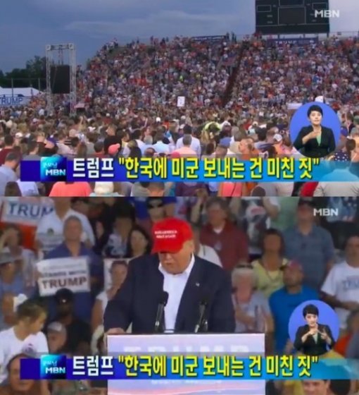 트럼프는 “삼성, LG, 샤프 등 이런 제품은 다 한국서 오는 것이고 그들은 막대한 돈을 번다. 그런데도 우리는 우리 군대를 (한국에) 보내고 그 곳에 들어가 그들을 방어할 태세를 갖춘다. 우리는 얻는 게 하나도 없는데 이는 말도 안 되는 미친 일”이라고 비난했다.