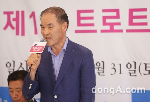 이항로 진안군수가 24일 오전 서울 프레스센터에서 트로트코리아 페스티벌 기자간담회에 참석해 인사말을 하고 있다.
