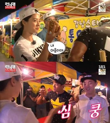 이날 ‘런닝맨’ 제작진은 프로그램 5주년을 기념하며 멤버들을 야시장으로 데려갔다. 이에 출연진 모두가 야시장에서 군것질을 하며 즐거운 시간을 보냈다.