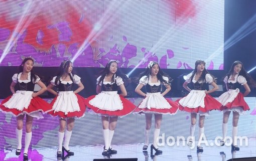 걸그룹 에이프릴이 24일 오후 서울 강남구 코엑스에서 열린 첫 미니앨범 ‘Dreaming’ 발매 쇼케이스에 참석해 화려한 공연을 선보이고 있다.