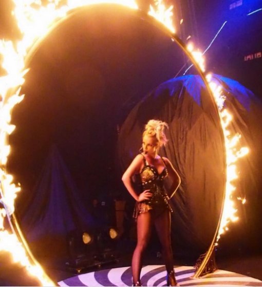 공개된 사진 속 브리트니 스피어스는 가슴 라인을 드러낸 아찔한 노출 의상을 입고 메이크업을 받고 있다. 브리트니 스피어스는 이 의상 등을 입고 화려한 불쇼를 선보여 눈길을 끌었다.