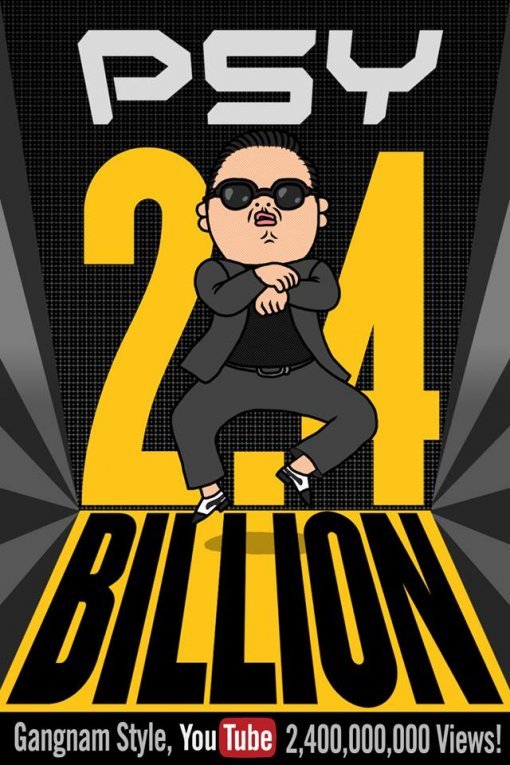 공개된 이미지에는 검정색 수트를 입고 '강남스타일'에서 선보였던 ‘말춤’을 추고 있는 싸이의 유쾌한 캐릭터가 등장해 눈길을 끈다. 또 ’24 BILLION’, ‘Gangnam Style, YouTube 2,400,000,000 Views!’라는 문구로 24억뷰 돌파를 기념했다.