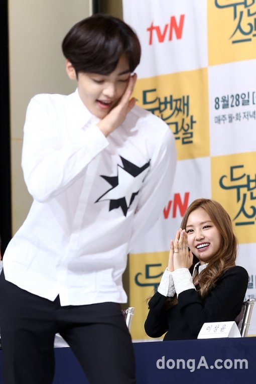 배우 김민재, 에이핑크의 멤버 손나은이 25일 오후 서울시 영등포구 타임스퀘어 아모리스홀에서 열린 케이블채널 tvN 금토드라마 ‘두번째 스무살’ 제작발표회에 참석해 기자간담회를 하고 있다.