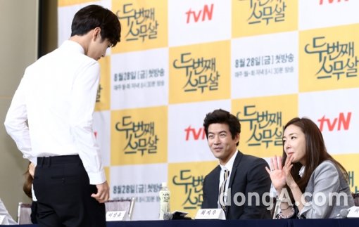 배우 김민재, 이상윤, 최지우 등이 25일 오후 서울시 영등포구 타임스퀘어 아모리스홀에서 열린 케이블채널 tvN 금토드라마 ‘두번째 스무살’ 제작발표회에 참석해 기자간담회를 하고 있다.