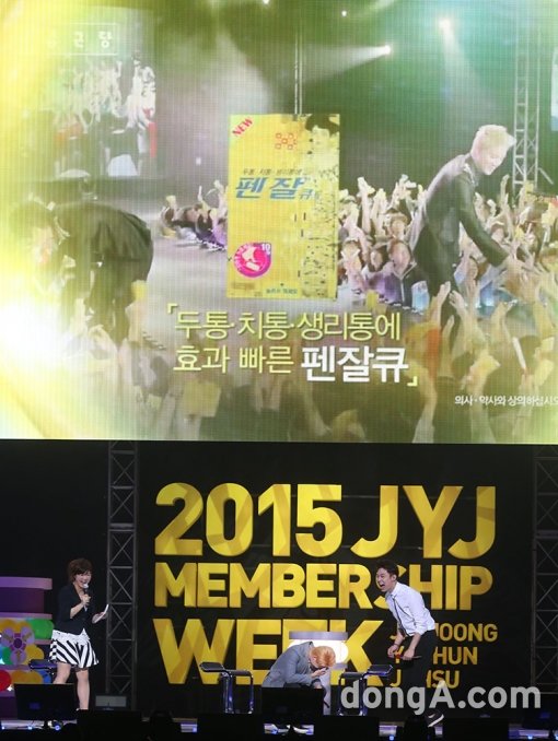 그룹 JYJ의 김준수(왼쪽)와 박유천이 25일 오후 서울 강남 잠실 실내체육관에서 열린 2015 JYJ MEMBERSHIP WEEK 팬미팅에서 밝게 웃고 있다.