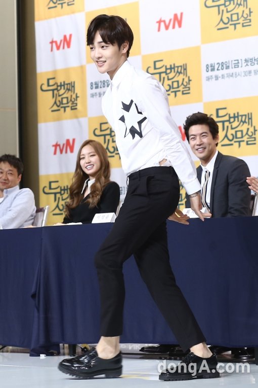 배우 김민재가 25일 오후 서울시 영등포구 타임스퀘어 아모리스홀에서 열린 케이블채널 tvN 금토드라마 ‘두번째 스무살’ 제작발표회에 참석해 기자간담회를 하고 있다.