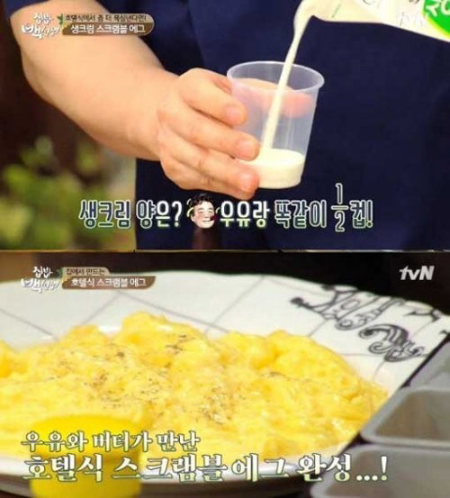 이어 '집밥 백선생' 백종원은 프랑스식 스크램블 에그 레시피도 공개했다. 프랑스식 스크램플 에그에는 우유 대신 생크림을 넣는 것이 맛을 내는 비결.
