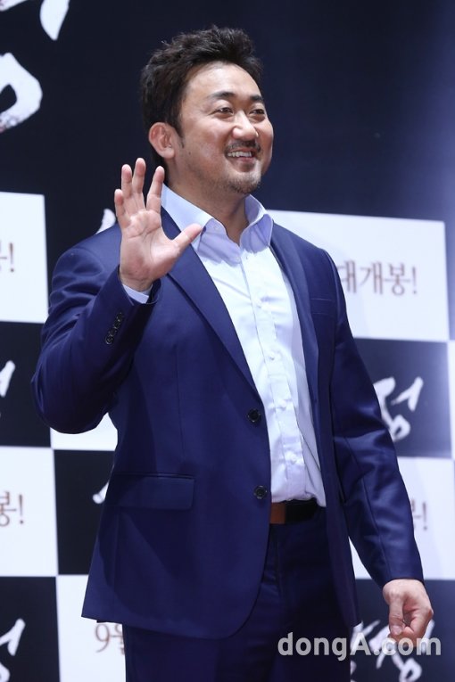배우 마동석이 26일 오전 서울시 광진구 건대입구 롯데시네마에서 열린 영화 '함정’ 언론시사회에 참석해 포토타임을 하고 있다.