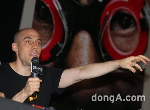 조슈아 오펜하이머 감독이 26일 오후 서울 동대문구 한 멀티플렉스관에서 열린 영화 ‘침묵의 시선’ 언론시사회에 참석해 인사말을 하고 있다.