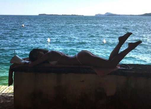 공개된 사진 속 이리나 샤크는 휴양지에서 해변을 배경으로 일광욕을 즐기고 있다. 엉덩이 라인이 훤히 드러나는 한뼘 비키니기 눈길을 끌었다.