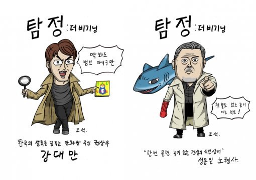 인기웹툰 ‘마음의 소리’ 작가 조석이 그린 ‘탐정: 더 비기닝’ 강대만과 노형사의 캐리커처가 공개됐다.