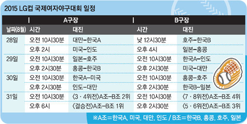 LG전자와 한국여자야구연맹(WBAK)이 공동 주최하는 ‘2015 LG컵 국제여자야구대회’가 28일부터 31일까지 경기도 이천 LG챔피언스파크에서 열린다. 지난해에 이어 올해로 2회째를 맞은 이 대회에는 한국의 A팀과 B팀을 비롯해 일본, 미국, 대만, 홍콩, 호주, 인도를 포함한 7개국 8개팀이 참가해 선의의 경쟁을 펼친다. 28일 열리는 개막식에는 LG전자 구본준 부회장, WBAK 정진구 회장, 조병돈 이천시장을 비롯한 주요 관계자들이 참석해 개막을 축하하고 선수들에게 격려인사를 전할 예정이다. 정 회장은 개막에 앞서 “내년에 열리는 세계여자야구월드컵에 앞서 전 세계 여성야구인들을 위한 축제의 장이 될 수 있도록 최선을 다할 것”이라고 밝혔다.