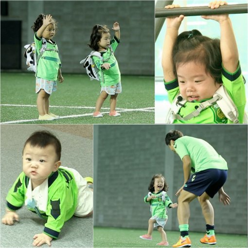 반면에 수아는 달리기에 재능을 보였다. 선착순 달리기 대결에서 ‘우등생’ 설아를 제치고 전광석화 같은 스피드를 선보인 것. 그런가 하면 아직 걸음마도 못 뗀 대박은 역시 축구선수 이동국 아들임을 입증하듯 축구공에 호기심을 드러내 눈길을 끌었다.