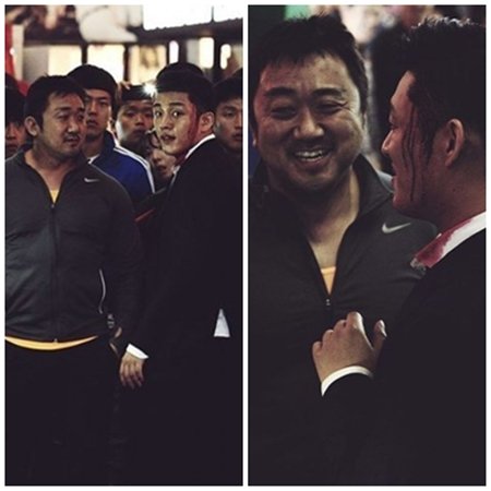 이 사진에서 마동석은 배우 유아인과 인파 속에 서서 웃고 있다. 두 사람의 훈훈한 모습이 눈길을 끈다.