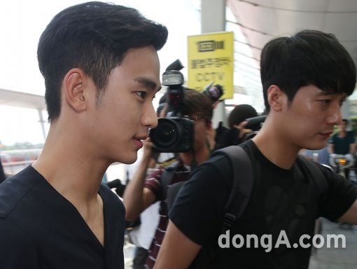 배우 김수현이 28일 오후 KBS2TV '프로듀사' 프로모션 차 인천국제공항을 통해 중국으로 출국하고 있다.