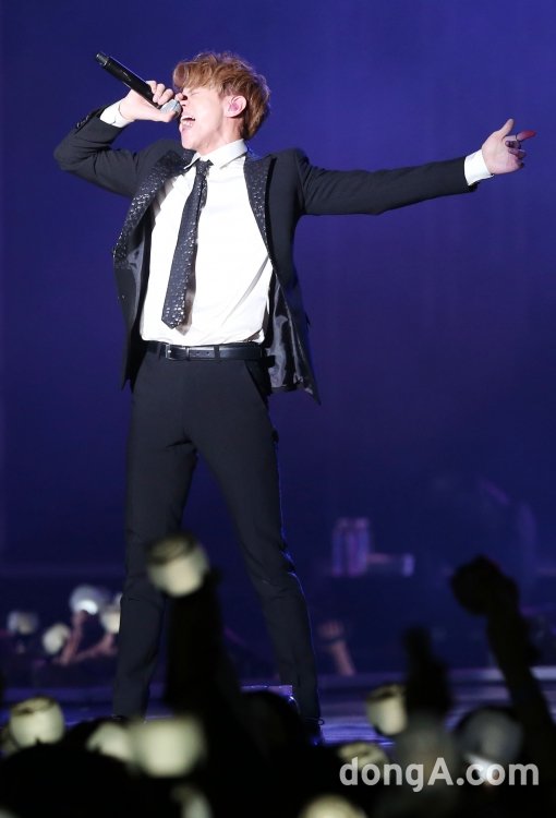 아이돌 그룹 비스트의 양요섭이 29일 오후 서울 올림픽 공원 내 체조경기장에서 열린 단독 콘서트 '2015 뷰티풀쇼'에서 화려한 무대를 꾸미고 있다.