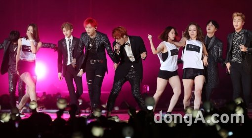 아이돌 그룹 비스트가 29일 오후 서울 올림픽 공원 내 체조경기장에서 열린 단독 콘서트 '2015 뷰티풀쇼'에서 화려한 공연을 꾸미고 있다.