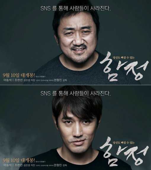 캐릭터 예고편과 함께 공개된 ‘함정’의 무빙 포스터는 무표정한 마동석과 조한선이 섬뜩한 표정으로 변하며 강렬하고도 섬뜩한 느낌을 전했다. 특히 천둥 소리와 함께 무슨 일이 벌어질 것 같은 불안하고 긴장감이 느껴지는 분위기는 마동석, 조한선 두 사람의 정체와 본 영화에 대한 호기심을 증폭시키고 있다.