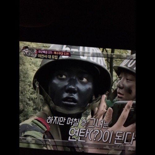 공개된 사진은 한그루가 MBC ‘일밤-진짜 사나이’(이하 ‘진짜 사나이’) 여군특집 3기를 보다가 촬영한 것으로 영상 속 한그루는 온 얼굴에 까맣게 위장 크림을 바른 상태다. 또한 ‘하지만 며칠 후 그녀는 연탄(?)이 된다’는 자막이 삽입돼 있어 웃음을 자아냈다.