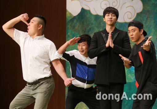 방송인 강호동, 이수근, 이승기, 은지원(왼쪽부터)이 1일 오후 서울 여의도 63컨벤션 그랜드볼룸에서 ‘신서유기’ 제작발표회에 참석해 포토타임을 하고 있다.