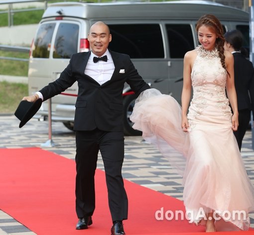 가수 손진영(왼쪽)과 아나운서 배지현이 2일 오후 제주 서귀포 예술의전당에서 열린 ‘2015 서귀포 신스틸러 페스티벌’에 참석하기 전에 레드카펫을 밟고 있다 .