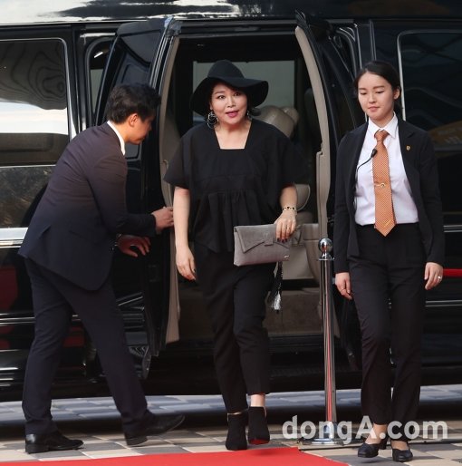 배우 고수희가 2일 오후 제주 서귀포 예술의전당에서 열린 ‘2015 서귀포 신스틸러 페스티벌’에 참석하기 전에 레드카펫을 밟고 있다 .