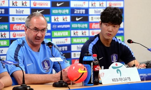 슈틸리케 감독은 라오스전을 하루 앞둔 2일 화성종합경기타운에서 열린 공식 기자회견에서 이런 상황들에 대해 “악재”라며 부인하지 않았다. 그러나 이내 “(그럼에도) 우리 팀은 지금 매우 좋은 분위기 속에서 안정감 있게 라오스전을 준비하고 있다”고 자신감을 드러냈다. 동석한 김영권(25·광저우 에버그란데)은 “위협적인 상황이 나오지 않도록 완벽히 막겠다”고 밝혔다.