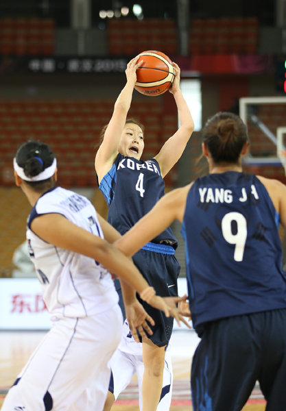 한국은 2일 중국 우한스포츠센터에서 열린 2015 국제농구연맹(FIBA) 아시아여자선수권대회 A그룹(상위리그) 조별리그 마지막 경기에서 인도를 121-44로 대파했다. 한국은 조별리그를 3승2패, 3위로 마치고 준결승에 진출했다. 한국은 조별리그 2위를 차지한 개최국 중국과 4일 우한스포츠센터에서 격돌한다. 한국은 지난달 30일 중국과의 조별리그 2차전에선 58-74로 패한 바 있다.