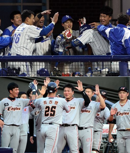 삼성(위쪽)은 8회에 무서워진다. 지고 있더라도 뒤집을 수 있는 뒷심이 발휘된다. 한화(아래쪽)와 NC는 1회부터 상대의 기선을 제압해버리고, 두산과 넥센은 경기 중반 승부를 결정짓는 힘을 지니고 있다. 스포츠동아DB