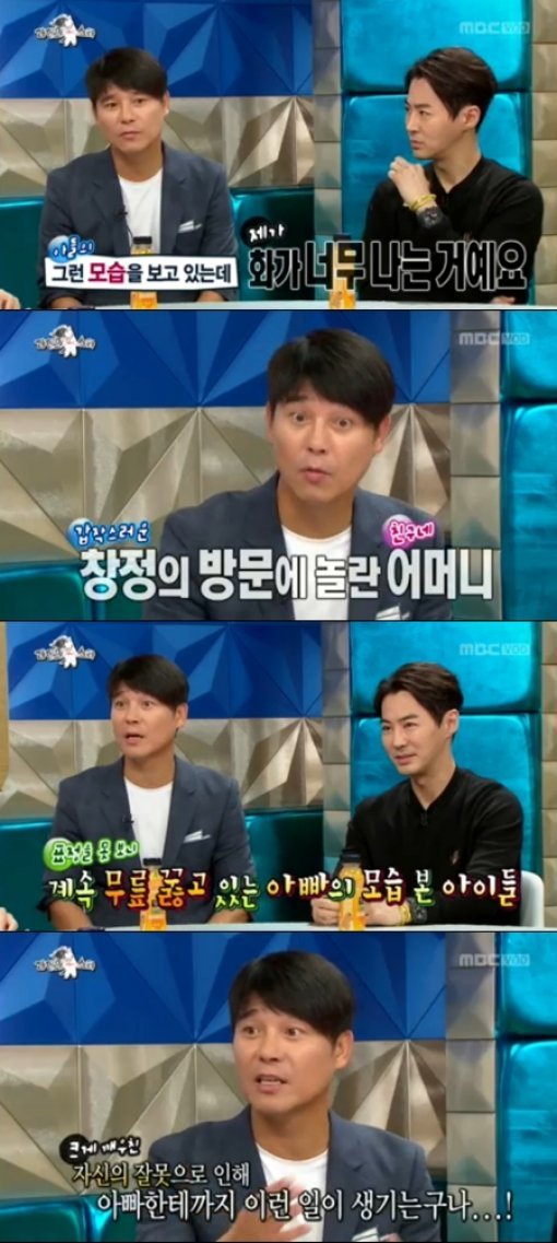 임창정은 2일 방송된 MBC ‘황금어장-라디오스타’에서 9살짜리 아들 친구 앞에서 무릎을 꿇었던 사연을 털어놨다.