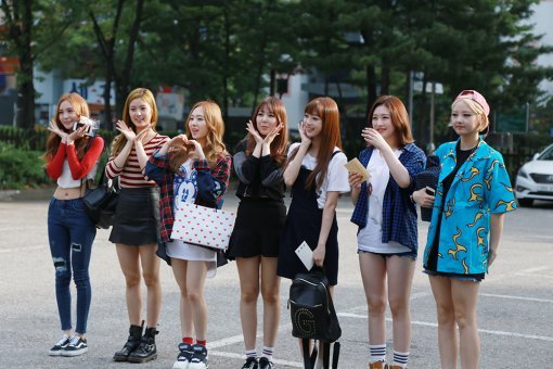 크롭 단가라 티셔츠와 청바지를 매치한 나현은 당당하게 얇은 허리를 드러내며 날씬한 몸매를 과시했고, 금발로 변신한 막내 뉴썬(NEW SUN) 역시 독특한 프린팅이 인상적인 셔츠와 한 뼘짜리 핫팬츠로 매끈한 각선미를 자랑했다.