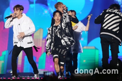 그룹 비스트가 5일 오후 서울 마포구 MBC 사옥 앞에서 열린 DMC페스티벌 K-POP 슈퍼콘서트에서 공연을 꾸미고 있다.