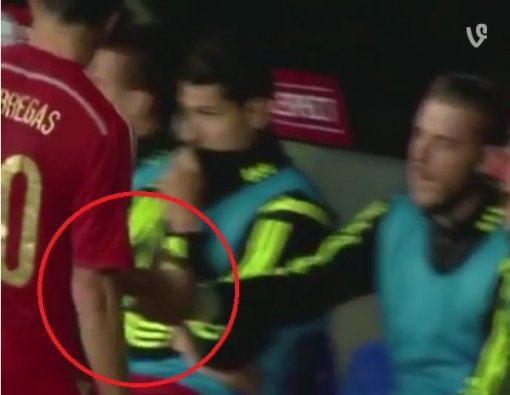 논란이 된 상황은 파브레가스가 교체돼 벤치로 들어오면서 발생했다. 파브레가스는 벤치로 들어오면서 동료들과 가볍게 하이파이브를 나눴다. 하지만 데 헤아가 내민 손은 보지 못하고 외면한 채 그대로 지나갔다.