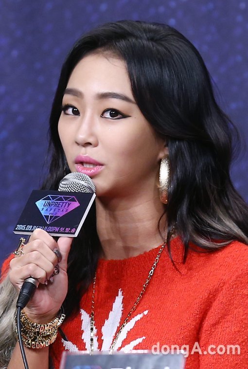 효린은 8일 오전 서울 영등포구 영중로 타임스퀘어 아모리스홀에서 진행된 Mnet '언프리티 랩스타2' 제작발표회에서 "멤버들이 많이 지지해줬다"고 말했다.