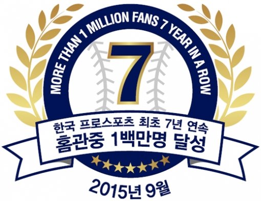 이번 시즌 현재 94만7196명의 홈 관중을 동원한 두산베어스는 이번 주 안으로 7년 연속 홈 관중 100만 명 달성이라는 초유의 대기록을 눈앞에 두고 있다. 두산베어스는 지난해 한국 프로 스포츠 사상 최초로 6년 연속 홈 관중 100만 명을 돌파하며 프로 스포츠 역사에 한 획을 그은 바 있다.