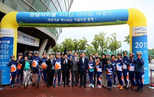 일반인과 시각장애인이 하나가 되어 페달링을 밟으며 도전하는 텐덤사이클 ‘아름다운 동행’의 대장정이 7일 막을 내렸다. 지난 5일 광명스피돔을 출발한 참가자들은 첫날 스피돔에서 동작대교까지 24km구간을 라이딩하며 적응훈련을 끝낸 뒤 일요일 군산으로 이동 금강하구둑에서 공주까지 91km 구간 도전에 나섰다. 이어 7일 공주에서 대청댐에 이르는 54km 구간을 끝으로 라이딩을 마무리 했다.