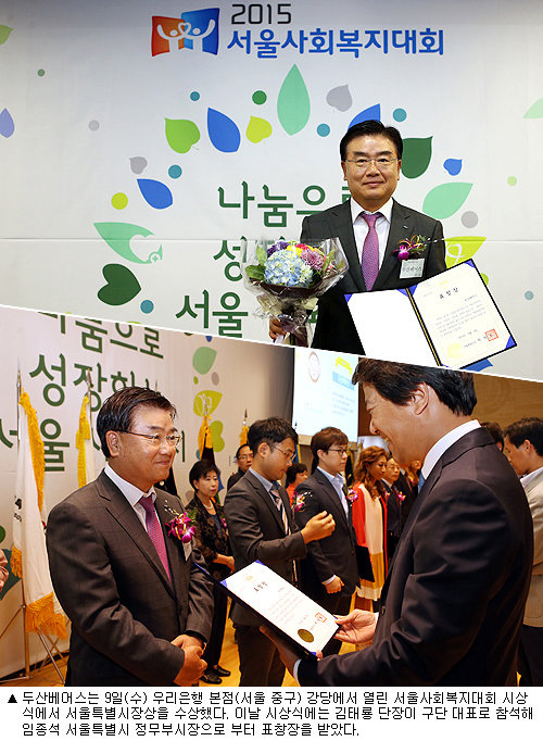 프로야구 두산 베어스가 9일 우리은행 본점 대강당에서 열린 ‘2015 서울사회복지대회’에서 서울특별시장상을 수상했다.