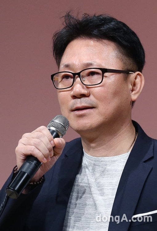 제스트-Z(신, 슌, 예호)가 소속된 제니스미디어콘텐츠 강준 대표가 10일 오전 서울시 강남구 일지아트홀에서 열린 그룹 제스트 유닛 제스트-Z의 앨범 ‘기회를 줘’ 쇼케이스에서 질의응답을 하고 있다.