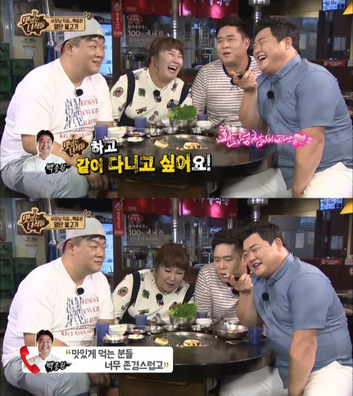 또 그는 “음식하는 사람들을 대변해 더 맛있게 먹어달라. 맛있는 녀석들과 같이 다니고 싶다”라며 러브콜을 보내 맛녀석 MC들 우쭐하게 만들었다.