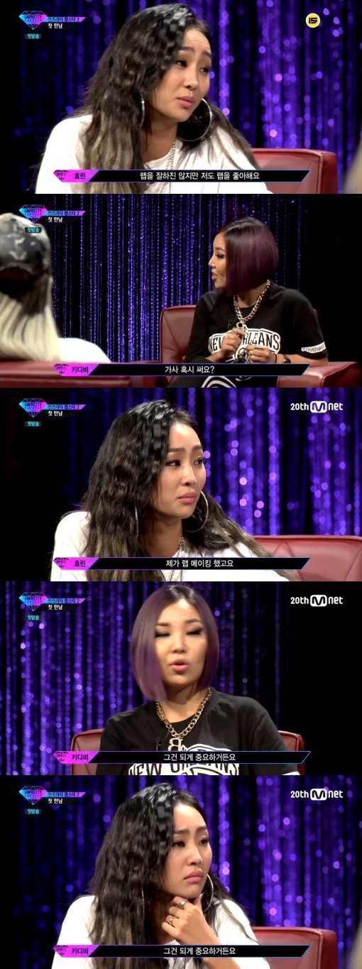 그러자 키디비는 “가사는 쓰냐”고 공격성 질문을 던졌다. 그러자 효린은 “랩메이킹 할 때는 내가 한다”고 응수했다.