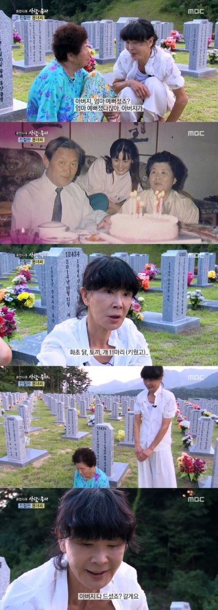 이용녀는 아버지의 묘를 바라보며 “정말 행복하다. 아버지의 딸이라서. 예쁘게 살겠다. 엄마도 잘 모시겠다”라고 약속하는 모습을 보였다.