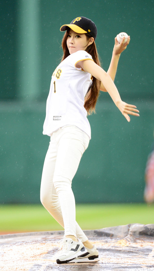 효민은 지난 14일 새벽(한국시간) 미국 펜실베니아주 피츠버그 PNC파크에서 열린 밀워키 브루어스와의 홈경기에서 시구자로 그라운드에 모습을 드러냈다.
